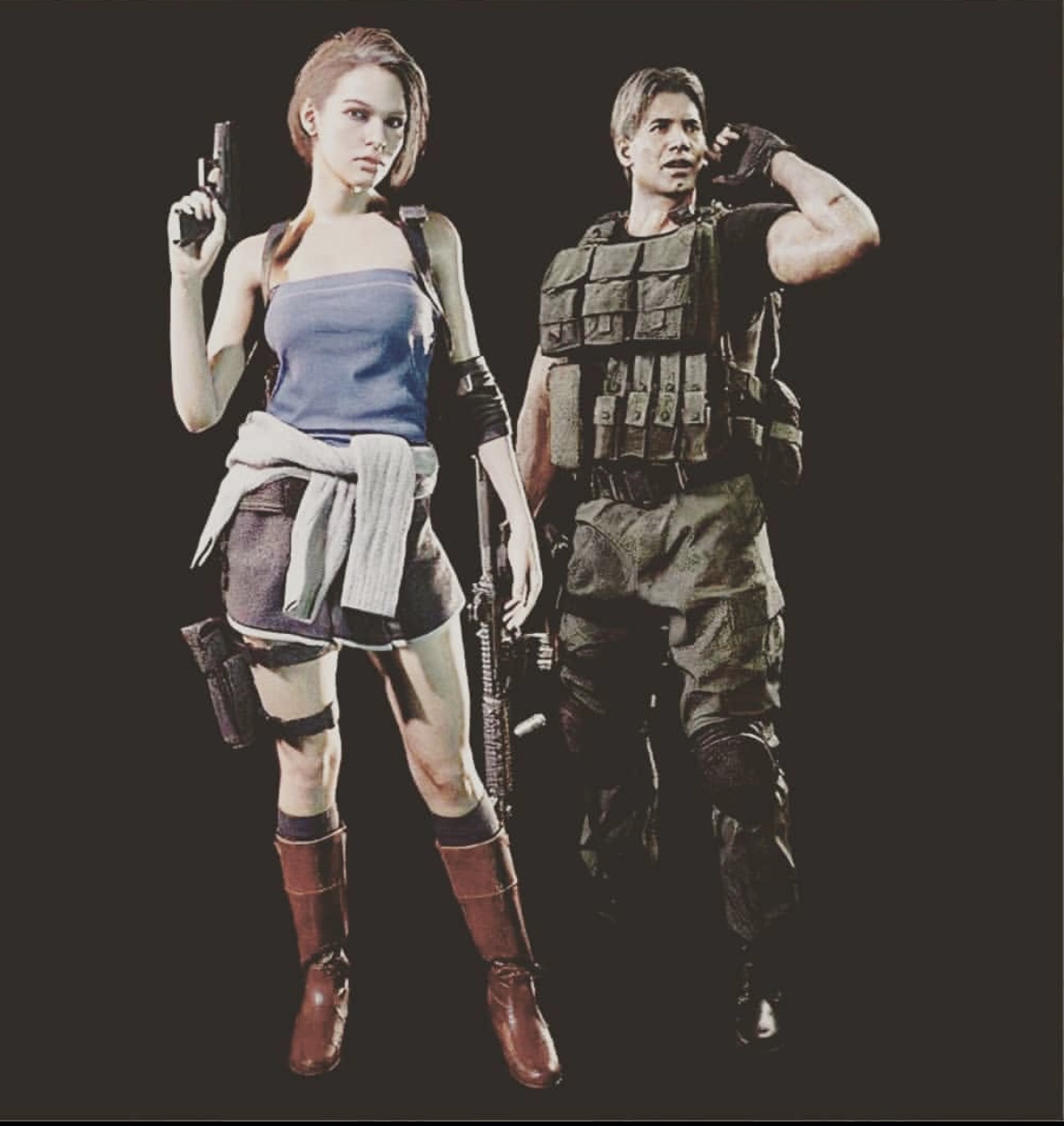 Jill fait vraiment penser au design de Lara croft dans les récents épisodes. Mais j'adhère comment ils l'ont fait, plus réaliste que l'original. Par contre, Carlos, c'est le même syndrome que Chris dans RE7, c'est un peu le défaut que je reproche à cette nouvelle version.