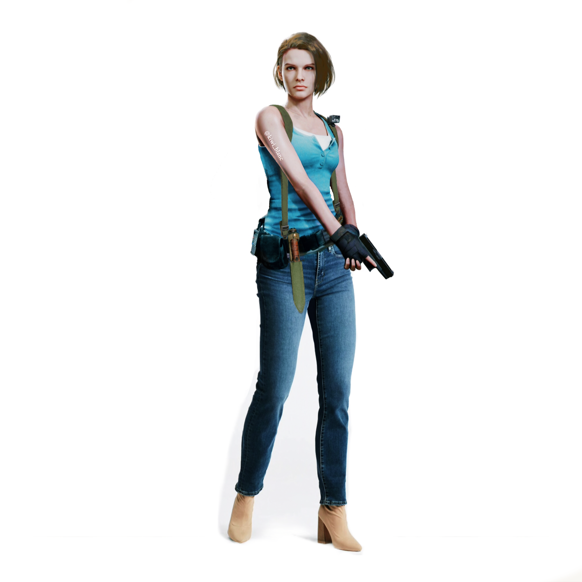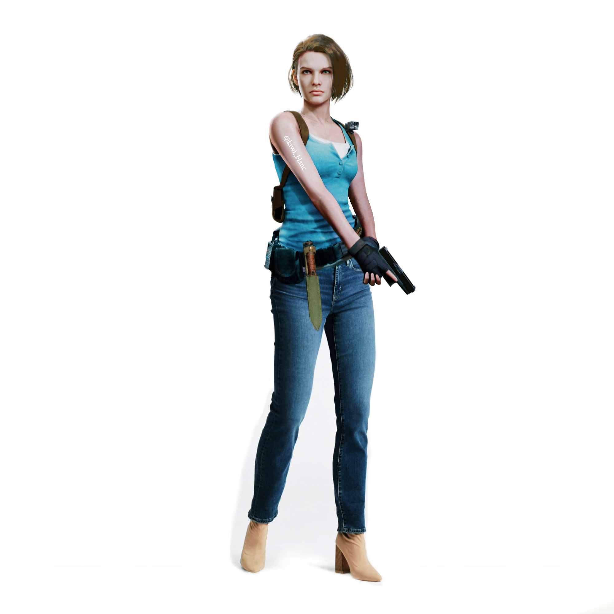 Le modèle de Jill : j'avais vu en effet qu'il était question que cette fille, faisant partie de la même agence de mannequins où Capcom a recruté ceux de Biohazard RE:2 je crois, et je n'y croyais pas parce que je ne vois strictement aucune ressemblance. Maintenant qu'elle a confirmé qu'il s'agit bien d'elle bon bah OK, mais franchement Jill ne ressemble pas du tout à ça. Rien que ce comparatif :