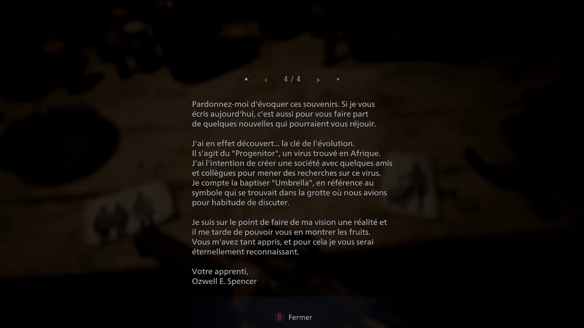 C'est pas tellement l'origine du logo Umbrella qui est importante. La véritable révélation c'est que Miranda a inspiré Spencer pour son projet d'évolution.