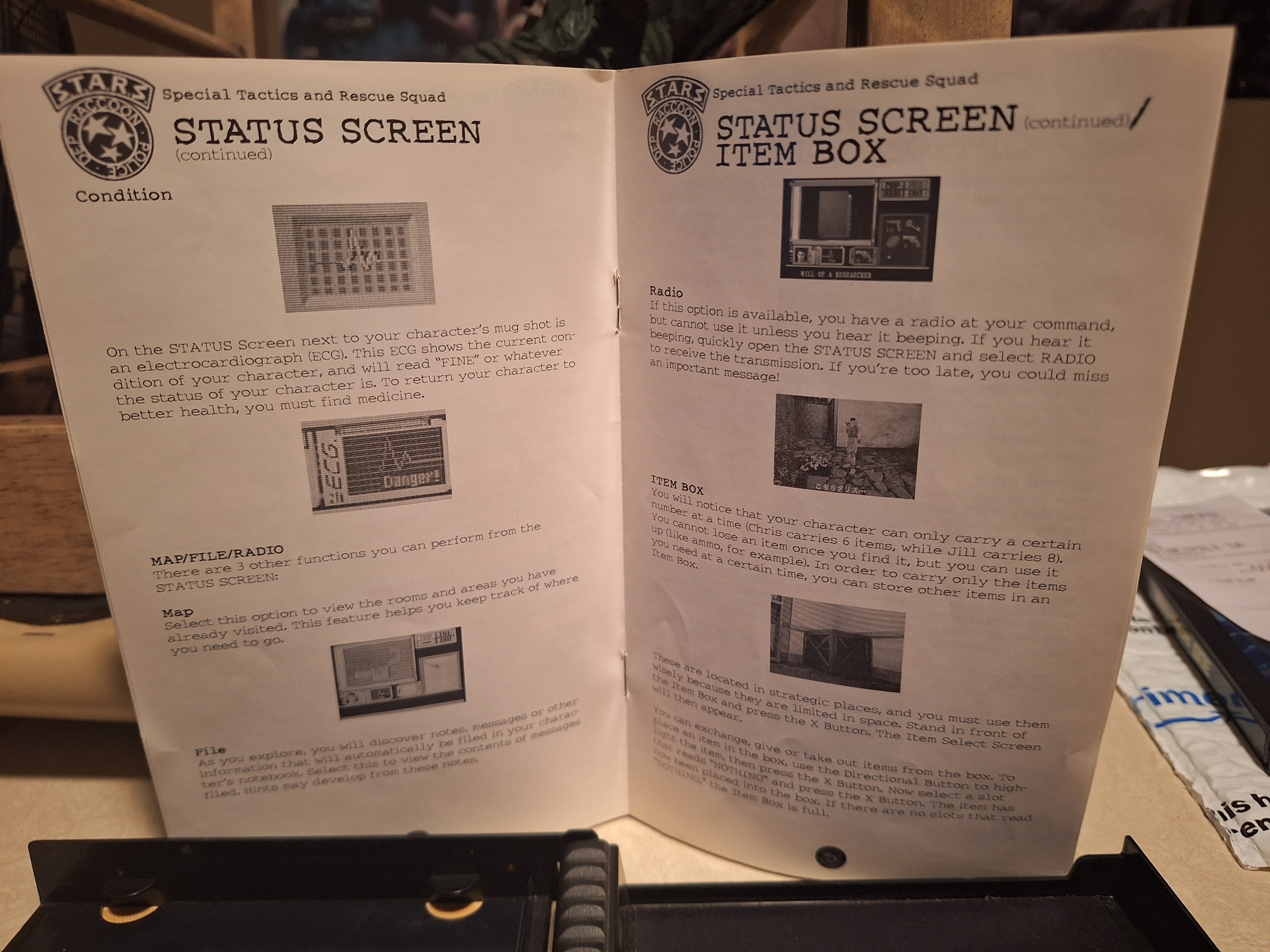 Les cinq volumes de Resident Evil: Marhawa Desire et sous-verre inspiré des jaquettes PS1 de Resident Evil 1, 2 et Dino Crisis,