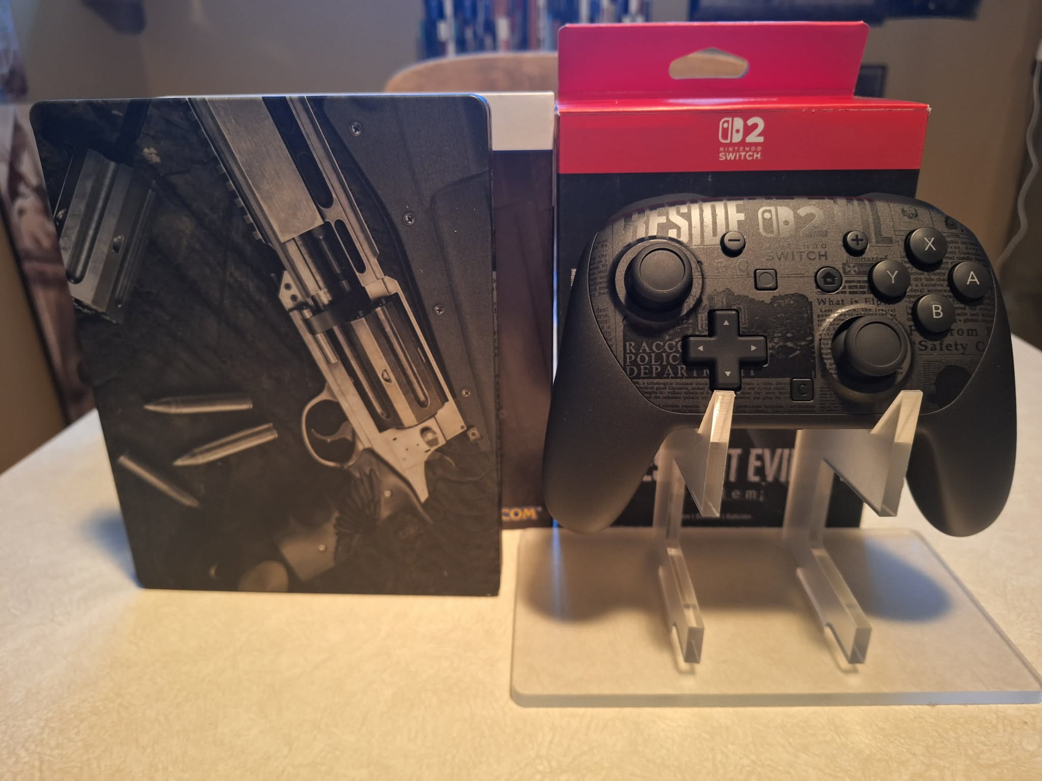 Je vous présente ma magnifique Steelbook Deluxe Edition de RE9quiem! Et en prime la manette Switch 2 spécial RE9. Je ne possède pas la Switch 2 donc cet manette servira probablement jamais. Un simple ajout de plus dans ma collection Biohazard.